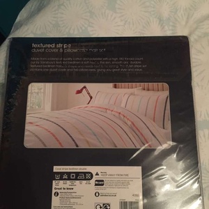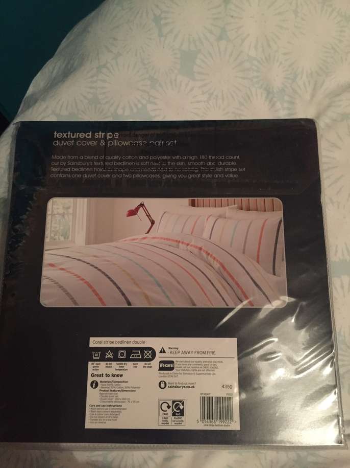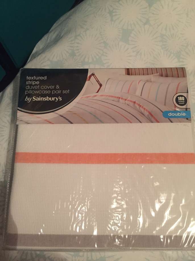 Textured Stripe Double Duvet Set This item is in Malmesbury GB All the details BRAND NEW & UNOPENED textured stripe Double Duvet & Pillowcase Set by Sainsbury’s Price 15 Time Remaining This listing has finished Category Home & Garden Post Message