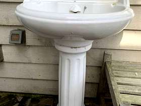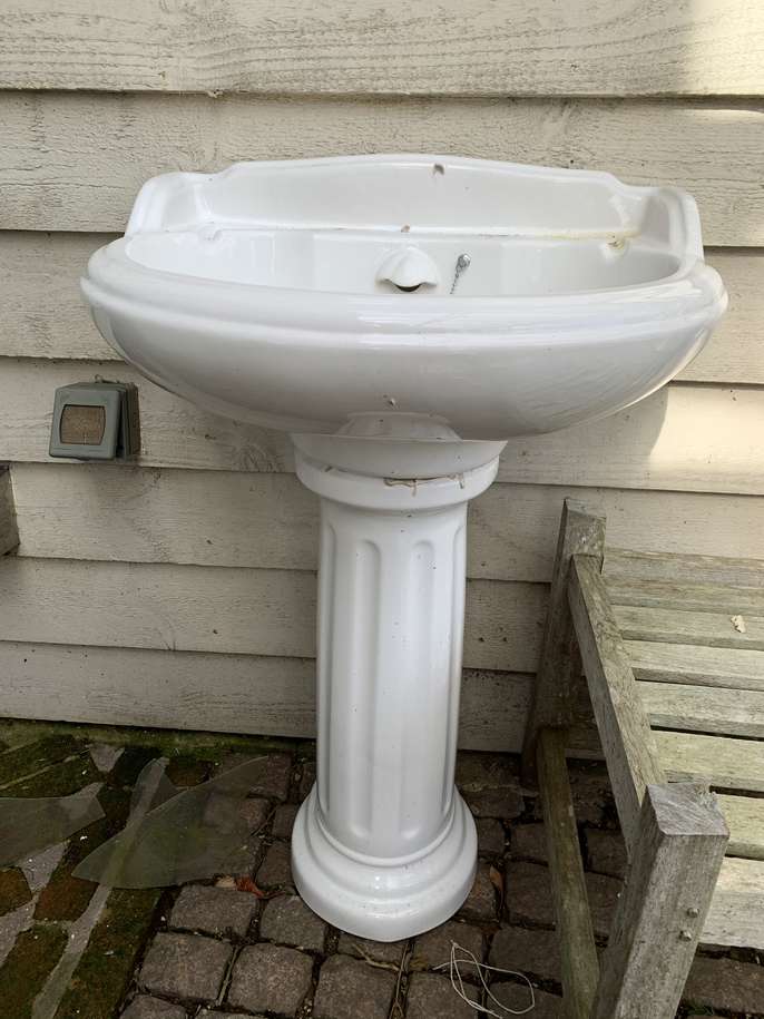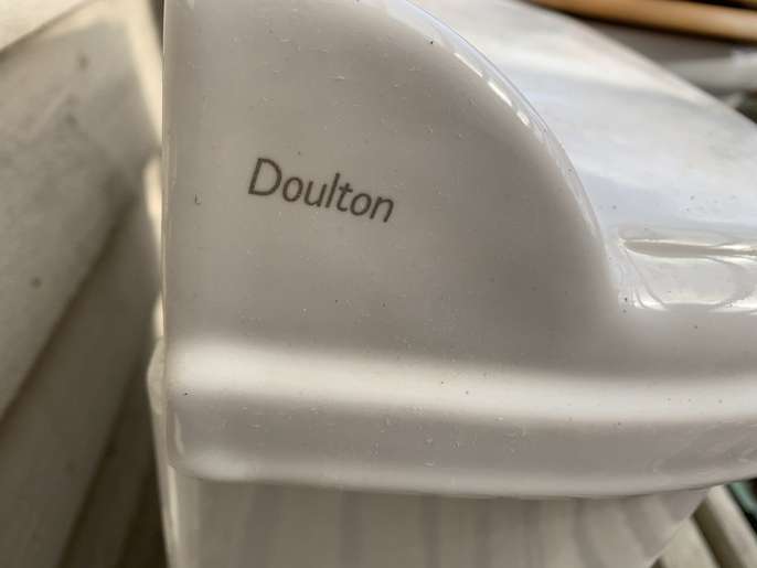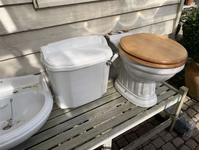 Low flush Toilet and pedestal sink in very good condition made by Doulton. Dismantled yesterday - now sitting in our garden awaiting collection. Will need a new loo seat. Will be clean for collection