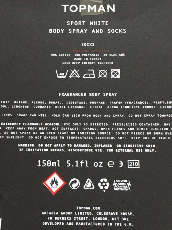 TOPMAN Body Spray & Socks Set New Unopened, Unused in original box Machine washable socks 80% cotton 150ml body spray