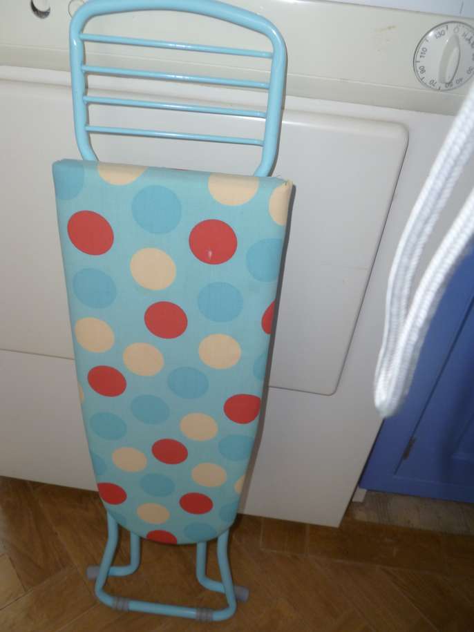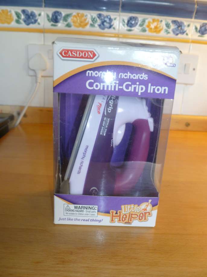 Toy iron and ironing board. Iron is Casdon ‘Morphy Richards confi-grip’. Box says age 3 – 8 years. Has rocker switch on front, turning anti-scale knob on rear and clicking noise temperature switch. Ironing board has metal frame, non- slip feet, and spotty design fabric (minute 5 mm split in fabric - barely visable and only noticed just now!) It is good quality and very sturdy. Three height positions, lowest is about 43 cm from floor to ironing surface. Folds flat for storage. Both used and much enjoyed. From a smoke free / pet free home. Would need collecting from North Camp, Farnborough. £10 . Please no offers as priced to sell – thanks.