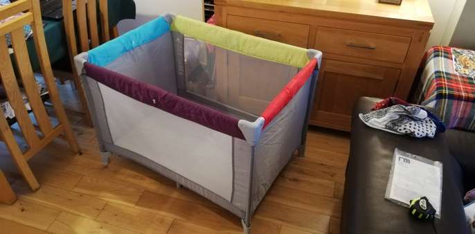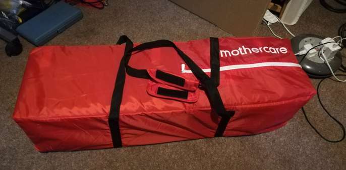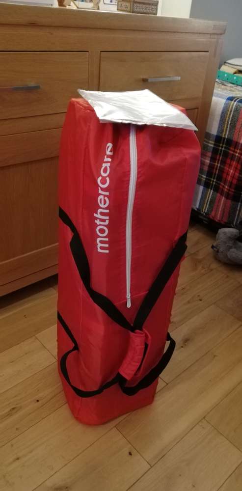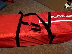 Mothercare travel cot. Easy to put up and take down. Can also be used as a playpen. Hardly used and in excellent condition. Folds into its own carry bag. Size when assembled: L104cm, W74cm, H74cm From a smoke-free home.