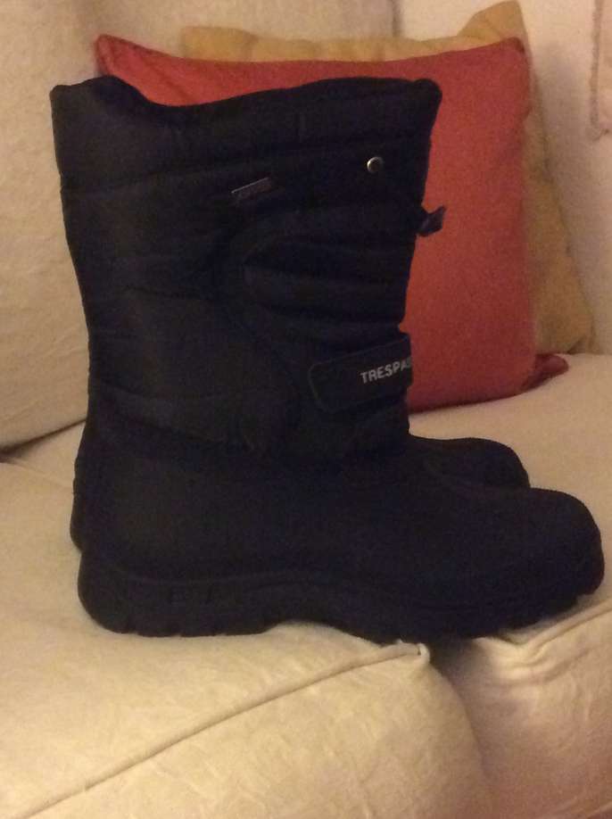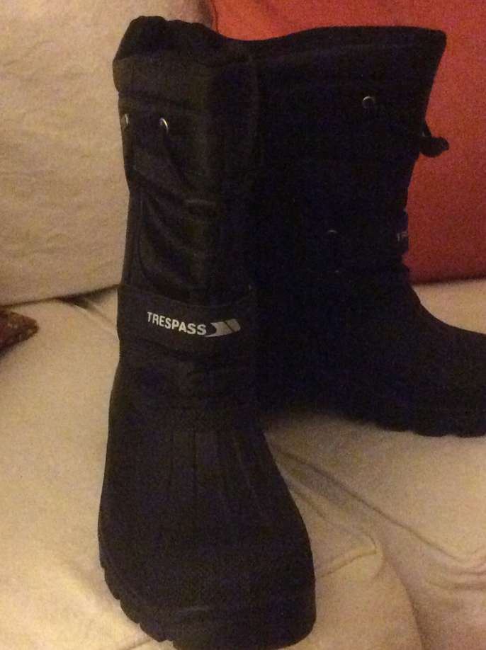 Brand new. As seen on TRESPASS WEBSITE. Duplicate present.Really comfortable and warm.Ideal for dog walking as thick rubber soles which won’t slip on ice. Zips on side and toggles for adjustment Calf length RRP OVER £40 will post for extra £5 as quite bulky