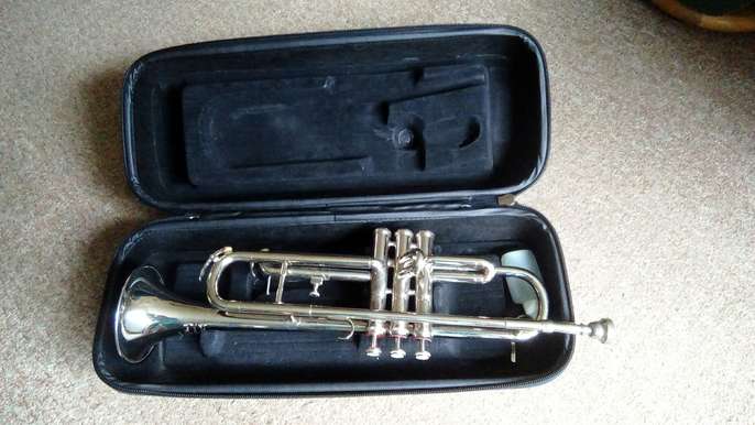 Good condition trumpet. Worked well for our son. Complete with carry case and 5 music books - 2 with CDs