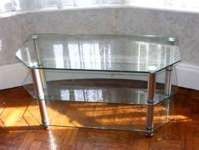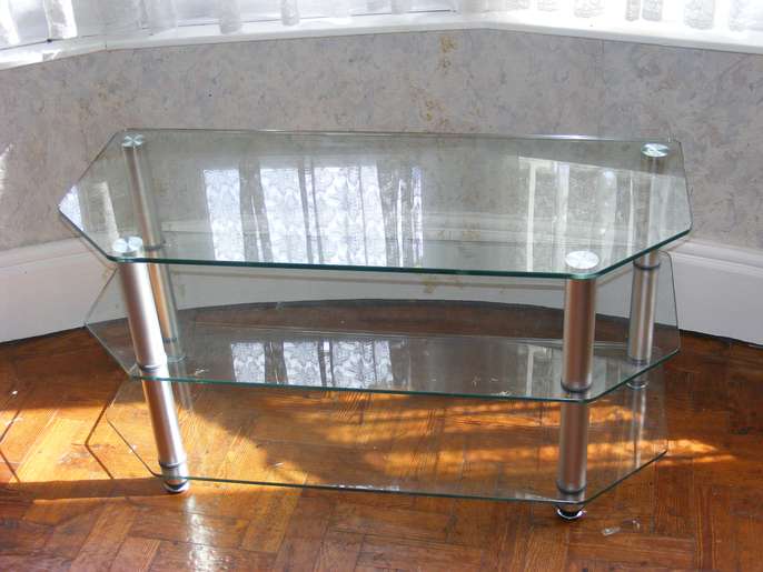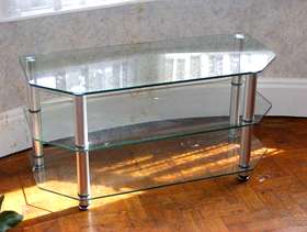 This tv stand is in excellent condition, has 3 toughened glass shelves, and looks great will easily take a 50inch tv, measures 105cm long x 46cm deep x 52 cm high, already dismantled for easy transport, but only takes a few minutes to re-assemble, URGENT PICK UP APPRECIATED.