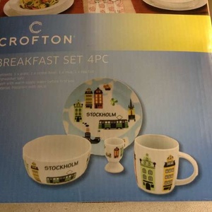 Brand new, never taken from the boxes. Each contains bowl, plate, egg cup and mug.