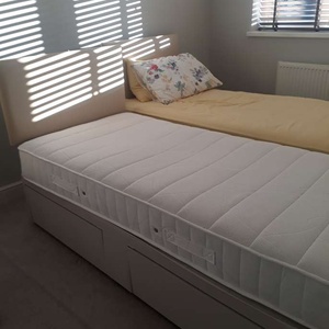 Two single beds each with two drawers beneath. Divans and Mattresses circa 4 years old (one with memory foam). Both beds are extremely clean and come complete with headboards. Available for collection on 20th March 2020. Contact Gary Moonshine on : 07775 792536