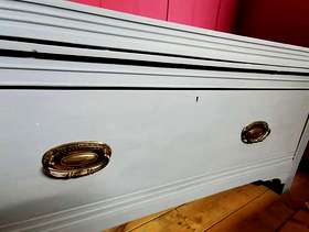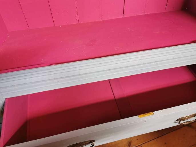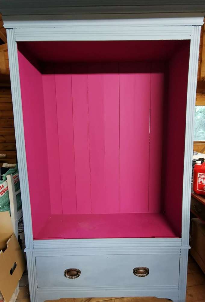 Upcycled pink and blue Victorian open wardrobe with drawer underneath