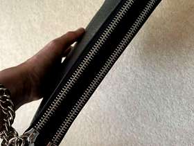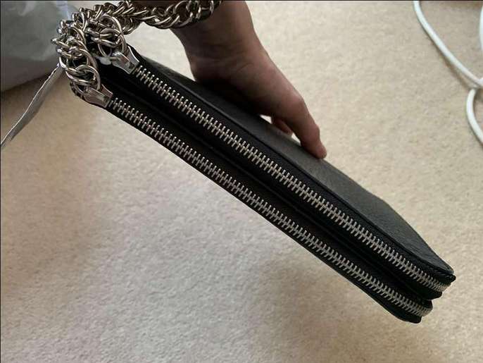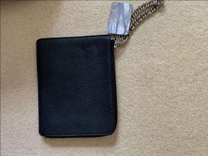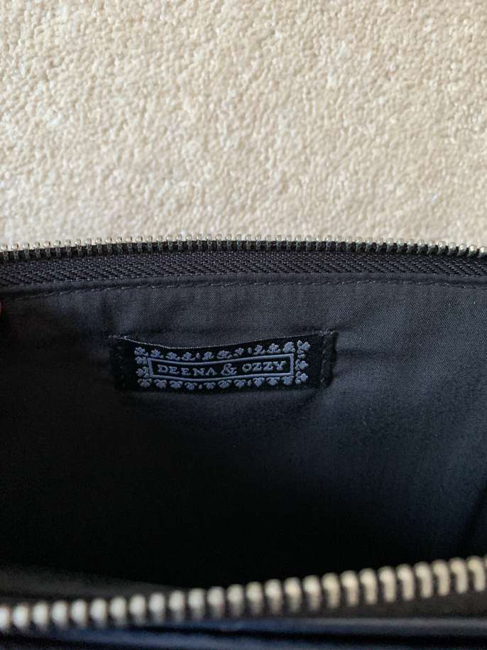 Brand new, unused and with original tags Deena & Ozzy black clutch bag with handle. With 2 compartments inside