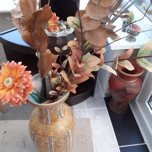 A large vase complete with decor. Social distancing will not be a problem