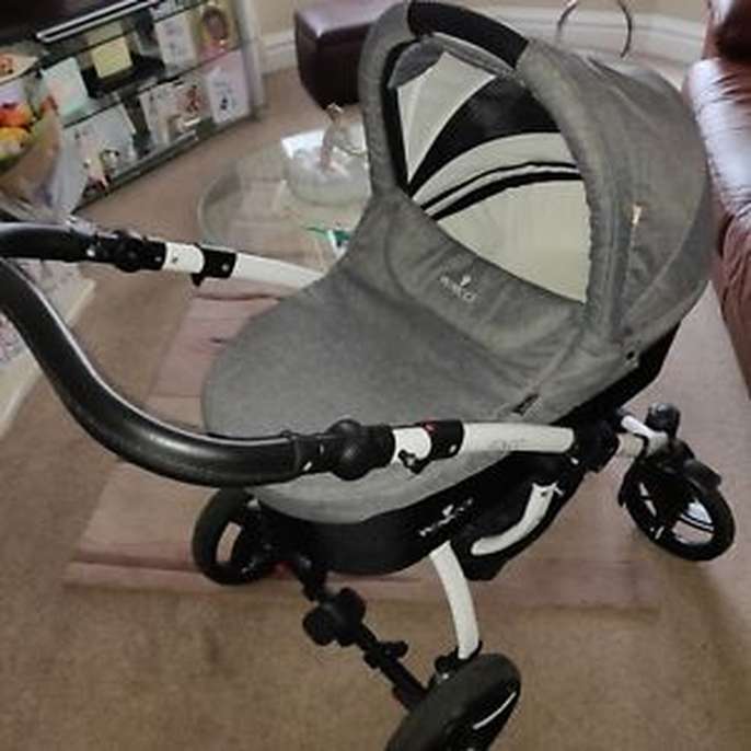 Venicci Pram with pushchair attachment - includes foot cover, bag, basket and extras Good clean condition