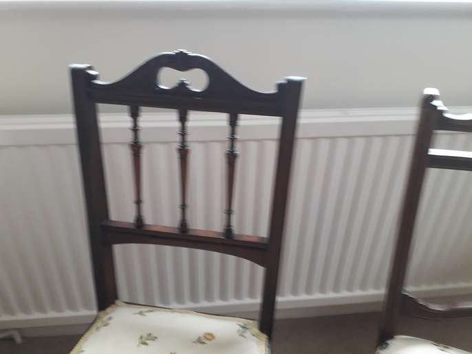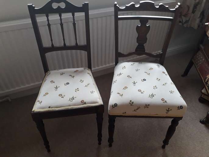 Two Victorian chairs, not matching. Traditionally upholstered in French Provencal style fabric. Suitable for bedroom