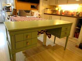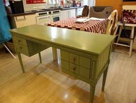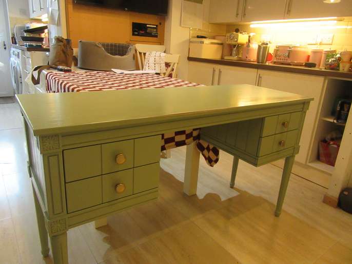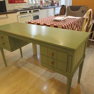 Green Vintage desk/dressing table, with 4 drawers. Very attractive, only 3 years old and in good condition. Bought from made.com Slightly rubbed along the front edge, as seen in picture 2. Can deliver free of charge to local areas if not too far. £125.00 ono.
