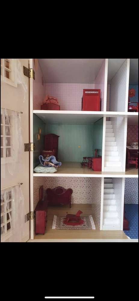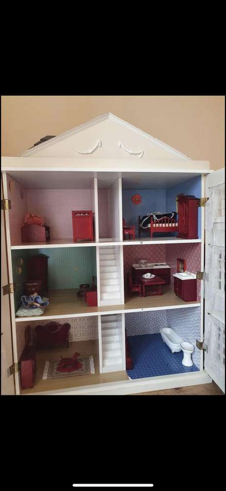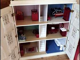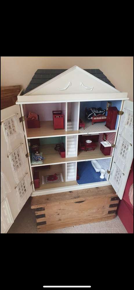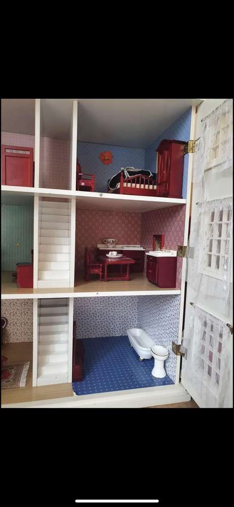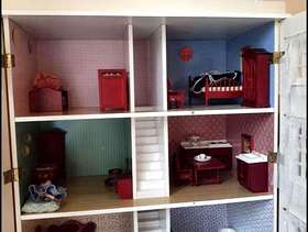 Vintage dolls house comes with accessories Been well loved and ready for its next loving child to begin a new era .