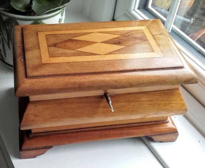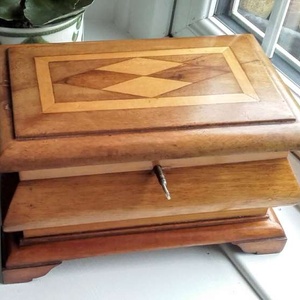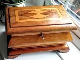 Vintage hand made wooden marquetry jewelry box