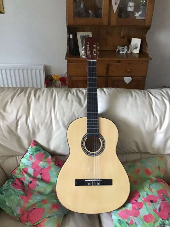 Viva Classical Guitar in very good condition (just requires one new string) This Guitar is 40 inches Originally advertised it for £10 but will now be prepared to sell for just £7(which is ridiculously cheap) Comes from a smoke free home