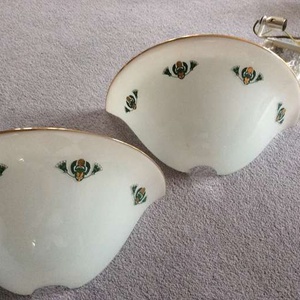 Pair glass wall uplights, opaque white glass with thistle motif, good condition, 34cm width, height 17cm