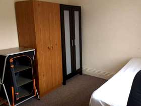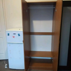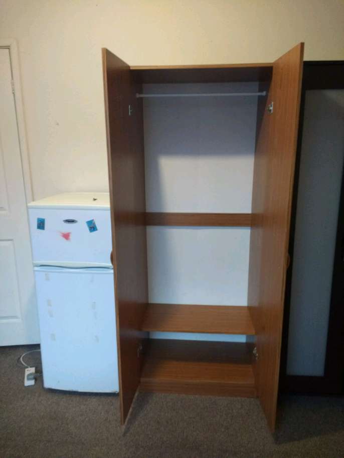 Brown wardrobe for sale. It has one full width shelf and full width rail. Dimensions are: W: 71cm D: 45cm H: 182cm.