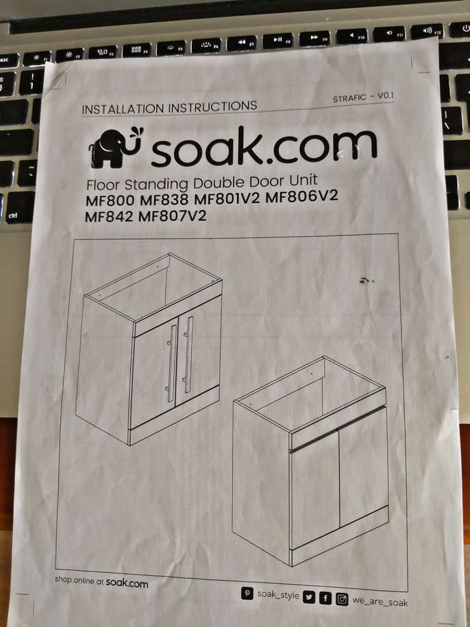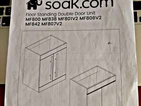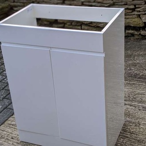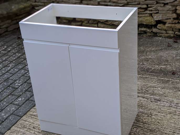 White laminate Soak bathroom double door vanity unit - as new. 60cm wide x 80cm high x 38.5mm deep
