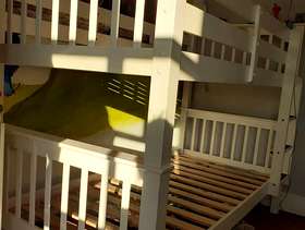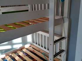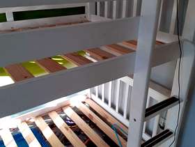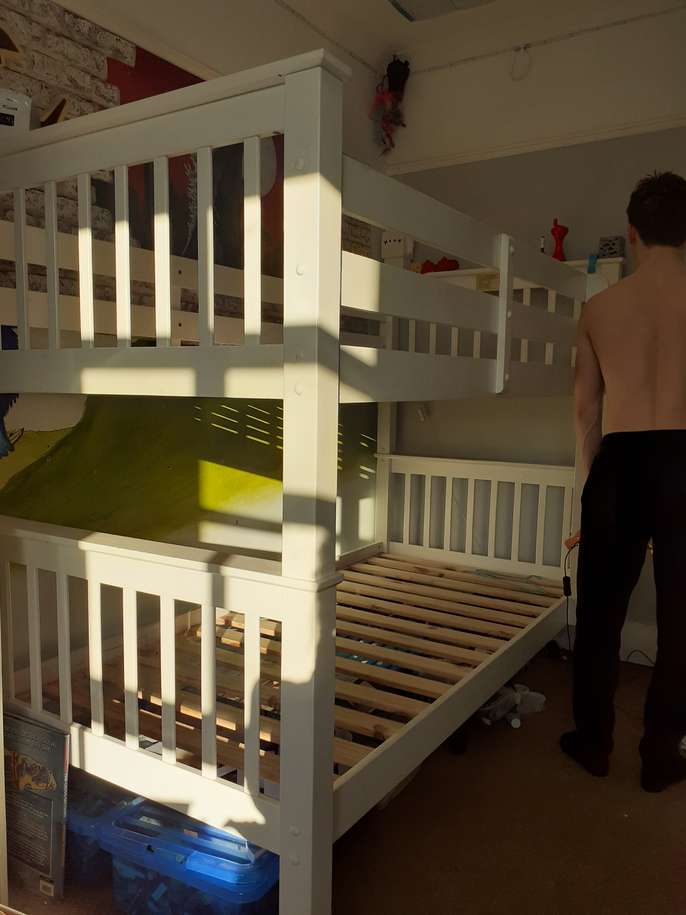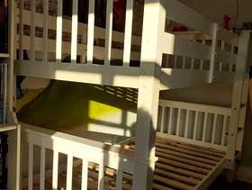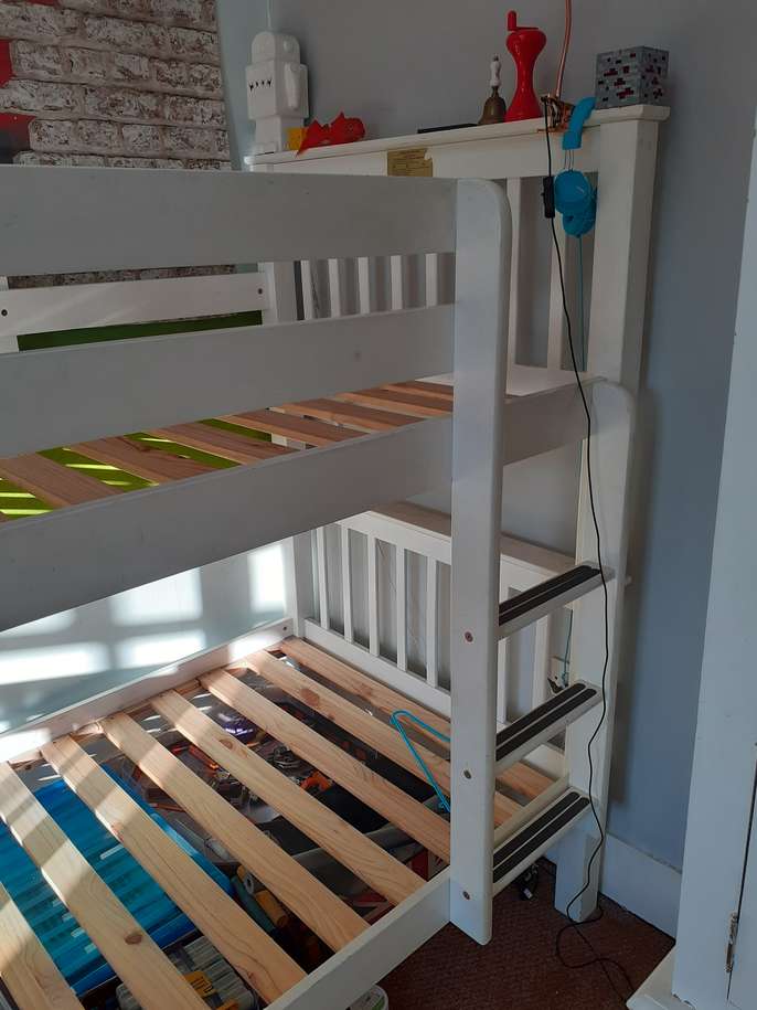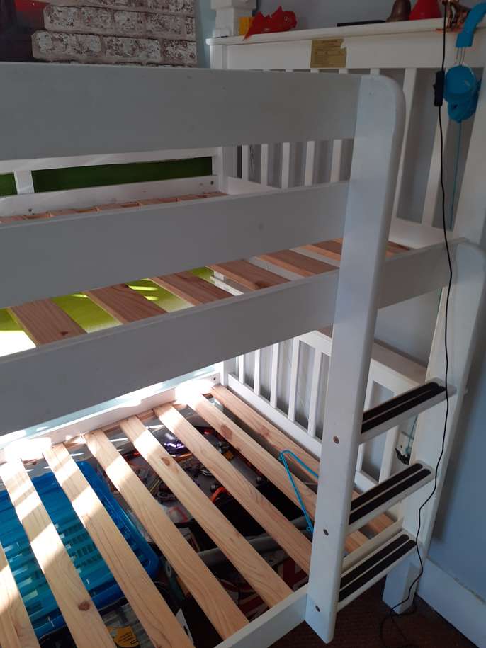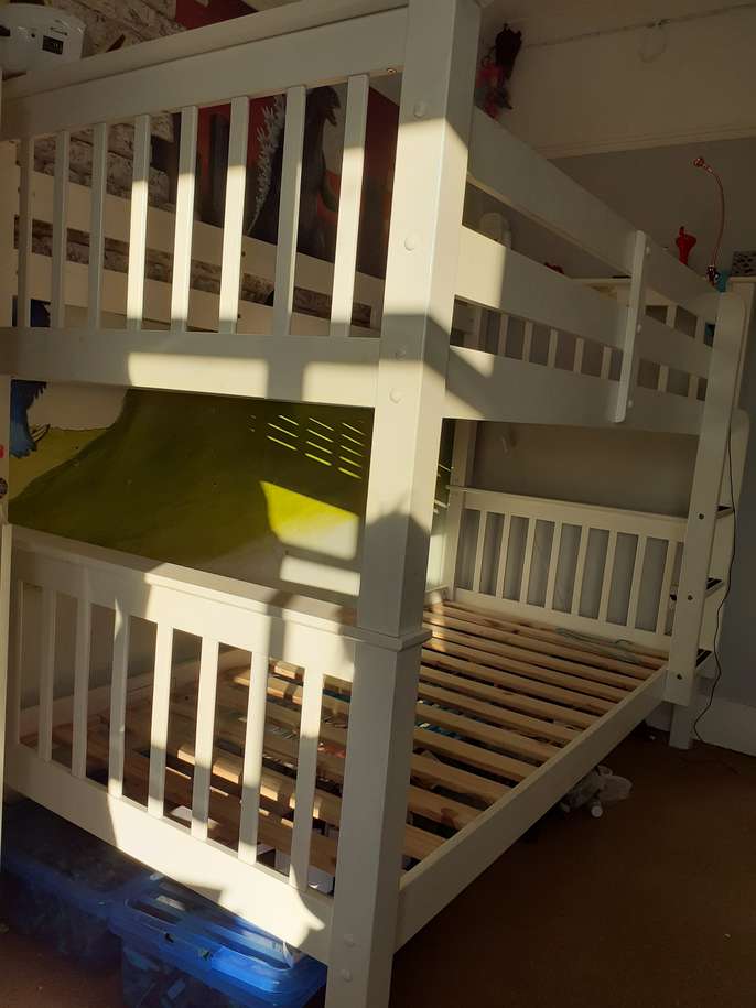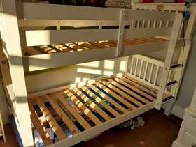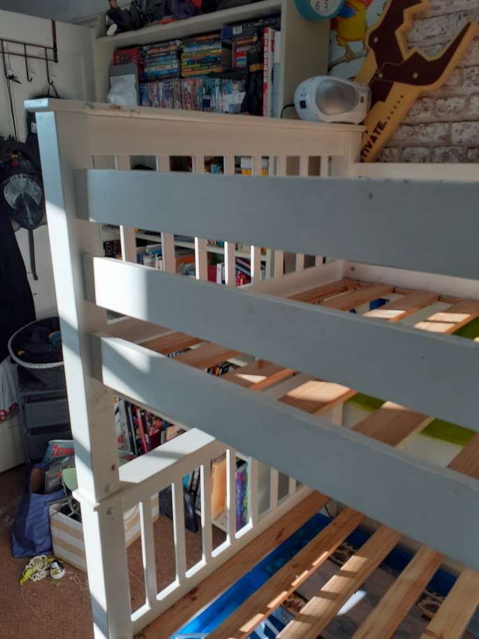 These white wooden bunkbeds are used but are solid and still have a lot of life left in them. We also have a single memory foam mattress which can be included free if required. There are a few chips and scratches as you would expect but nothing major. We are open to offers so please just ask.