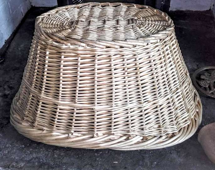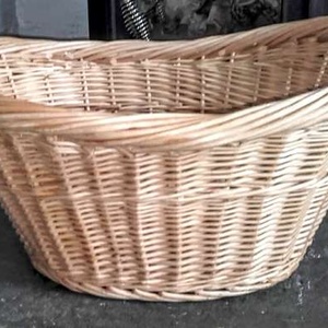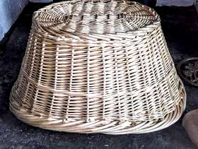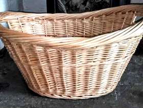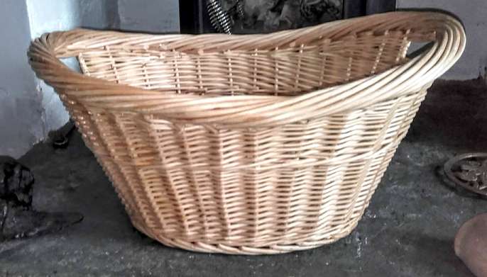 A strong wicker basket with 2 handles in very good condition. Could also be painted or varnished and lined with plastic to be used as a large cheap planter. 59cm long 23 across.