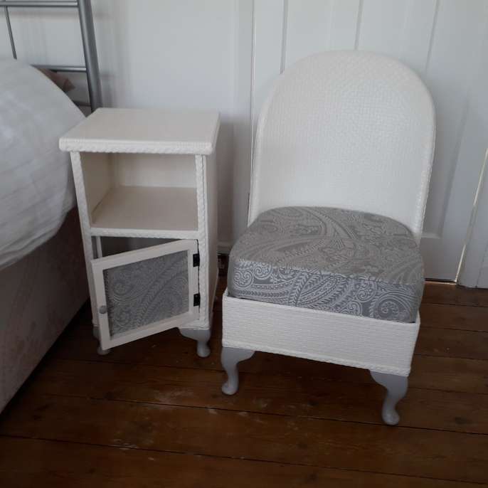 Newly refurbished and reupholstered. Nice addition to a bedroom. Both items £45.00 ono