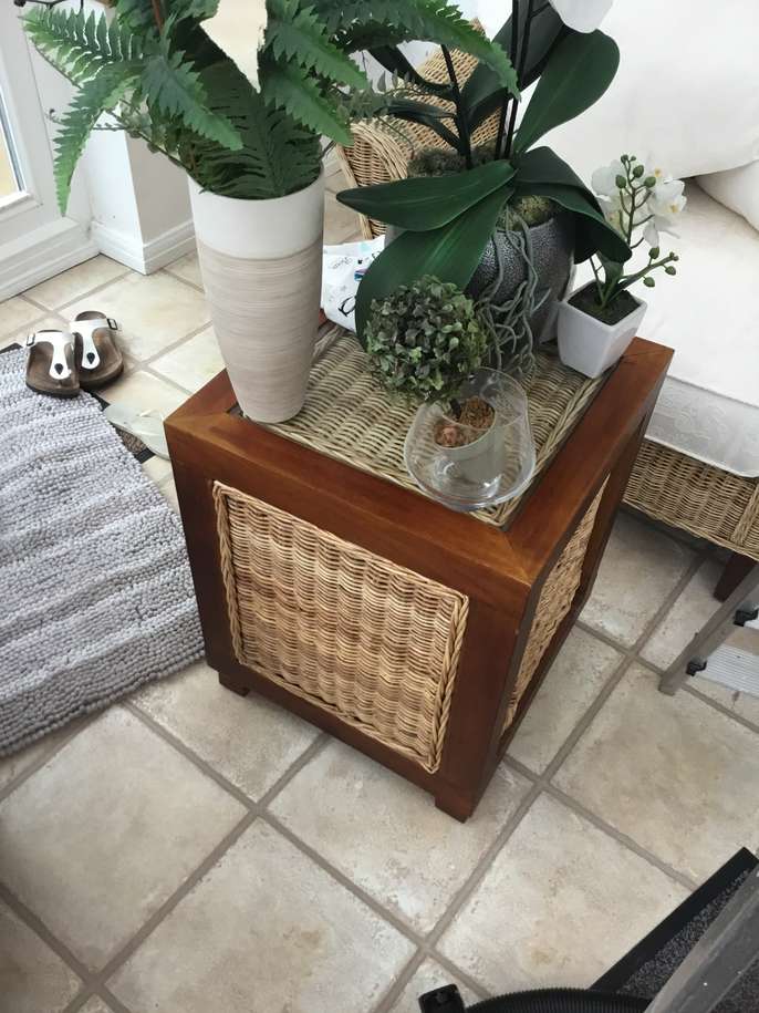 Beautiful wickers conservatory furniture two seater sofa two single seater chairs two coffee tables with storage drawers Wanted £250 will sell for £100 for quick sale (needs a van for collection)