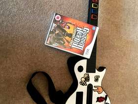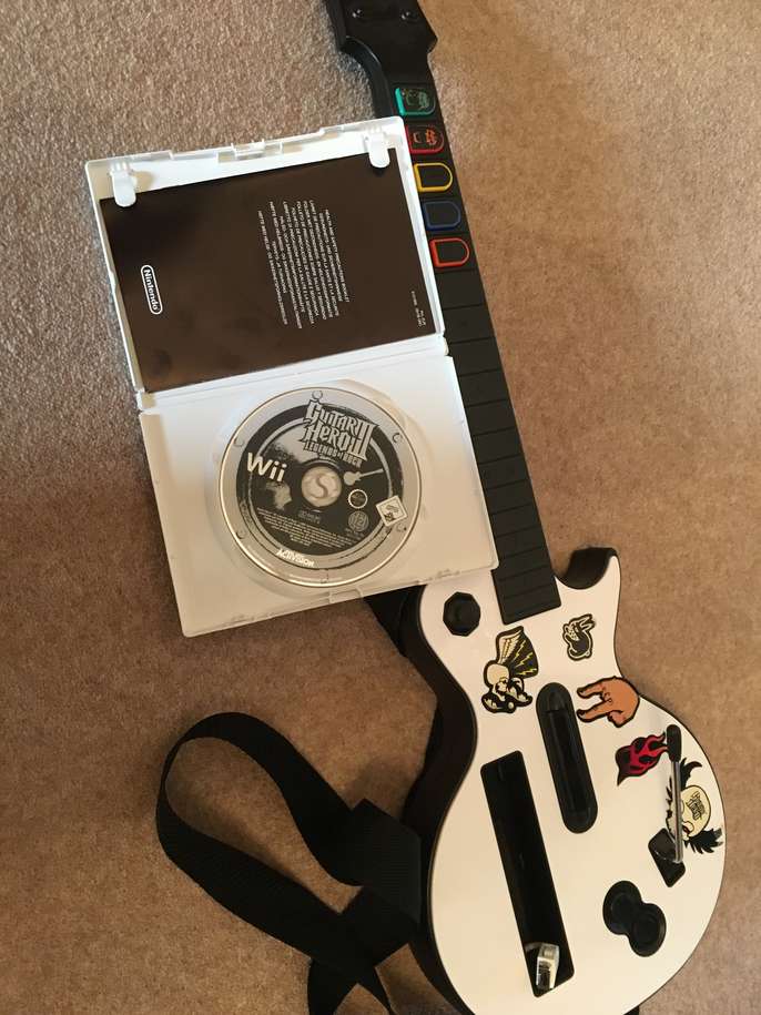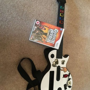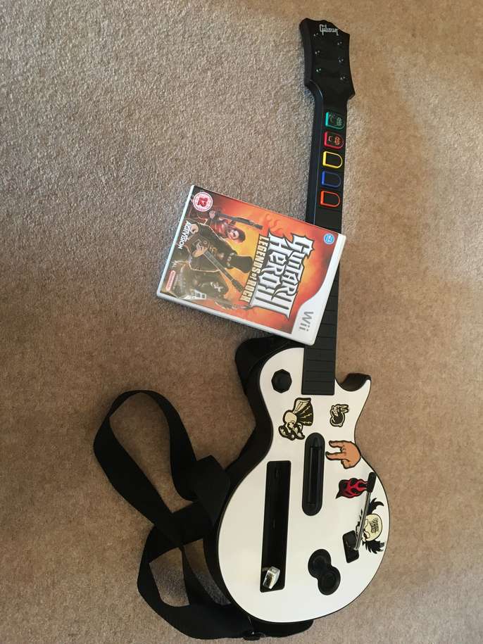 Wii Guitar Hero - Legends of Rock - Guitar/Disc The guitar has a few extra stickers added and is in great condition The disc is in its case and is also in good condition. Collection from Camberley area