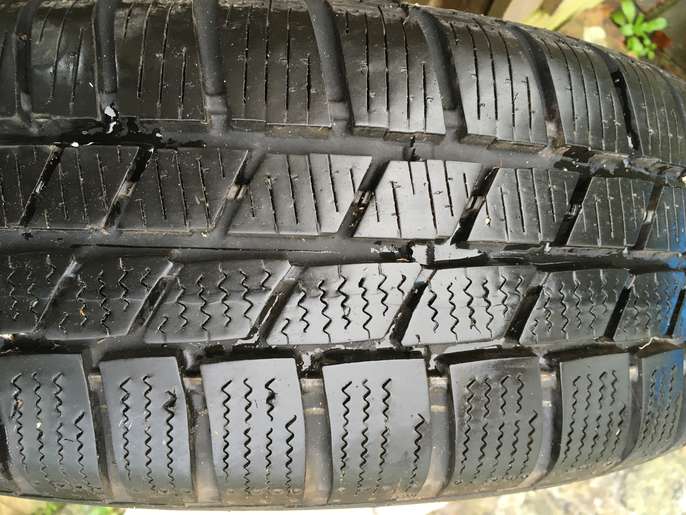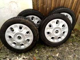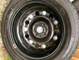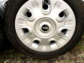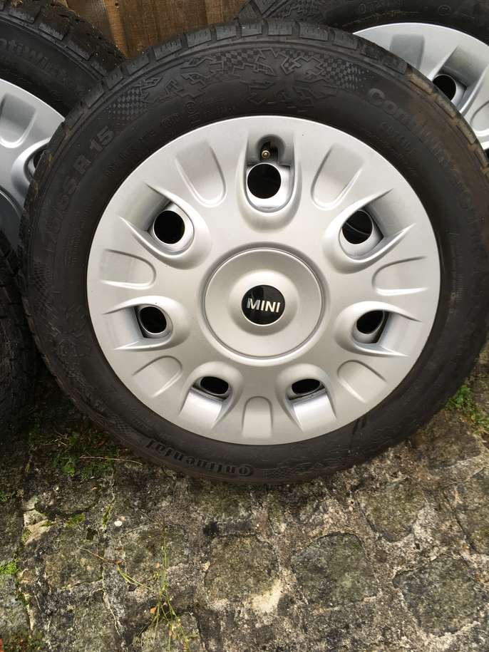 Set of Continental, Conti Winter Contact TS810S 175/65 R 15 84T Radial Tubeless tyres on steel rims with hub caps that were used on a 2008 Mini Cooper.