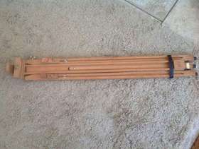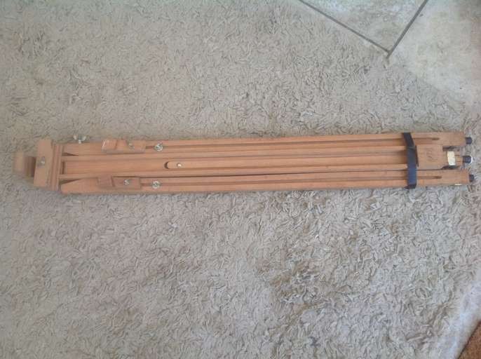 A wooden artist easel in very good condition but has been well used. Folds easily for storage and fully adjustable.