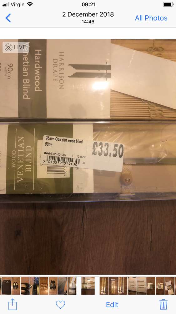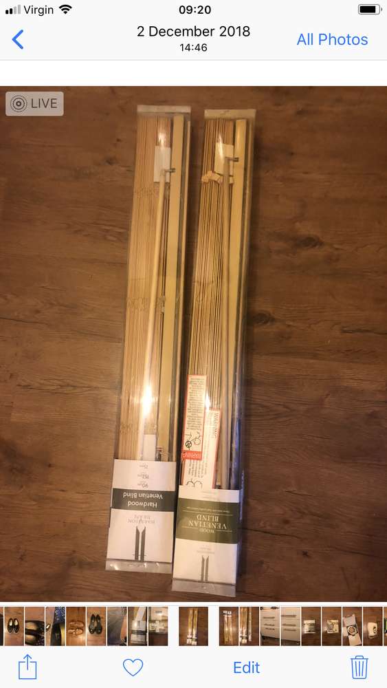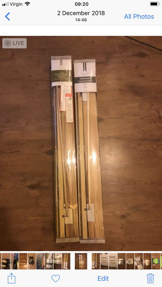 Wooden blinds Dimensions 92 cm x 152 25 mm. Brand-new still in packaging cost £33 for one. selling the two for £45 Have got another plastic one as seen in the photos £5 pounds.