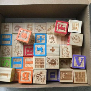 50 very good quality building blocks consisting of pictures, letters and numbers.