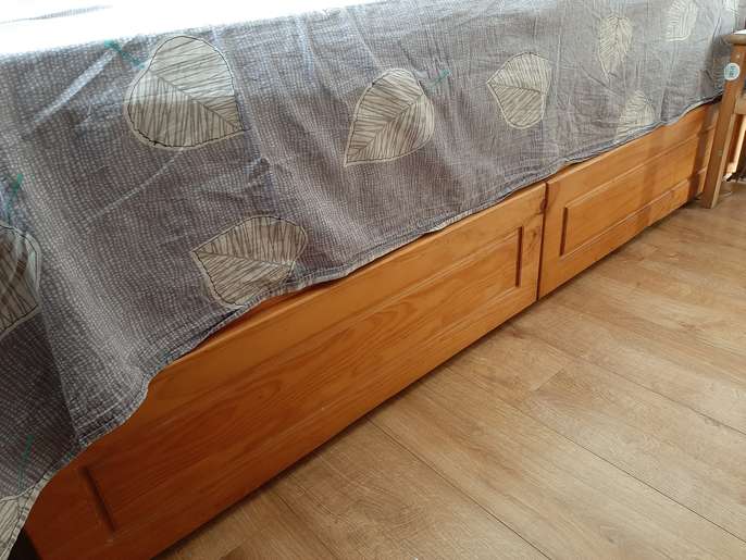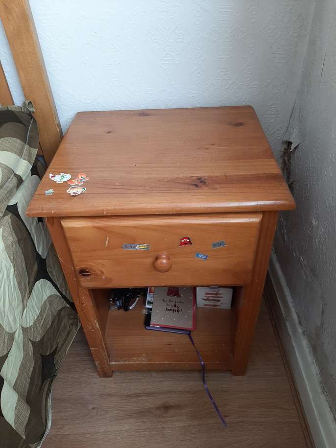 Used wooden double bed with two bedside tables and two under bed drawers. very very solid and heavy. £100 ono. contact 07805059026.