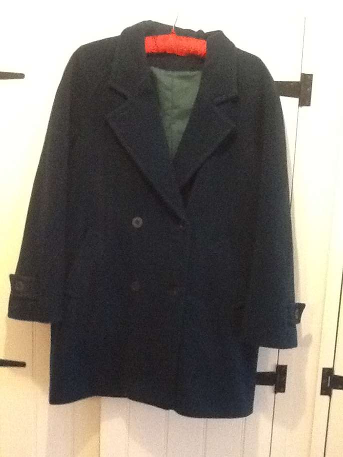 Three quarter length green wool coat designed by First Avenue. Size 14. Sold for charity on behalf of a neighbour.