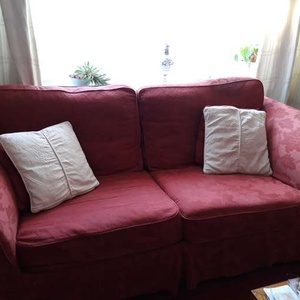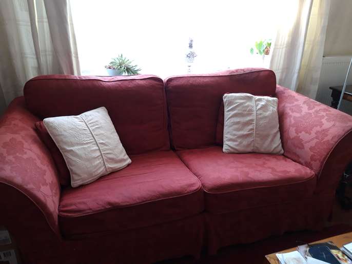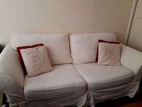 Two sofas. Two sets of covers.1 cream. 1 red. Used good condition. In picture red sofa is a sofa bed with mattress.200inch wide. 35inch high. 38inch deep. 2nd is 206wide. 35inch high. 35inch deep. Selling as moving in few days. Collection asap.