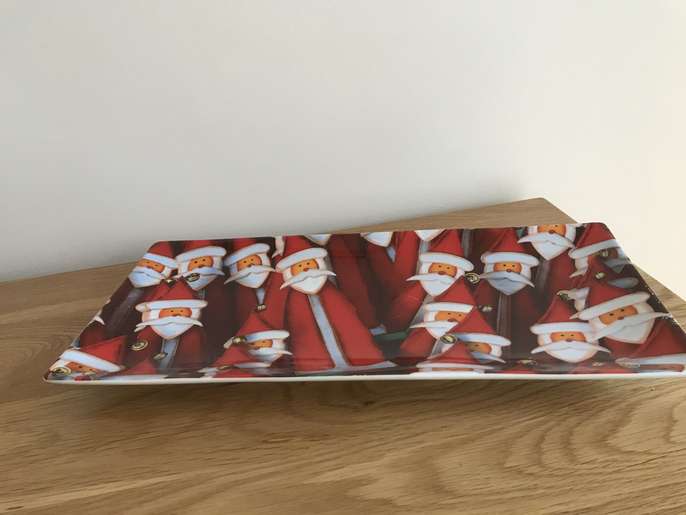 Xmas plate This item is in Heatherside GB All the details Rectangular Xmas plate, Santa design. Size 34 x 17 Price £2 Time Remaining This listing has finished Category Pottery & Glass Post Message