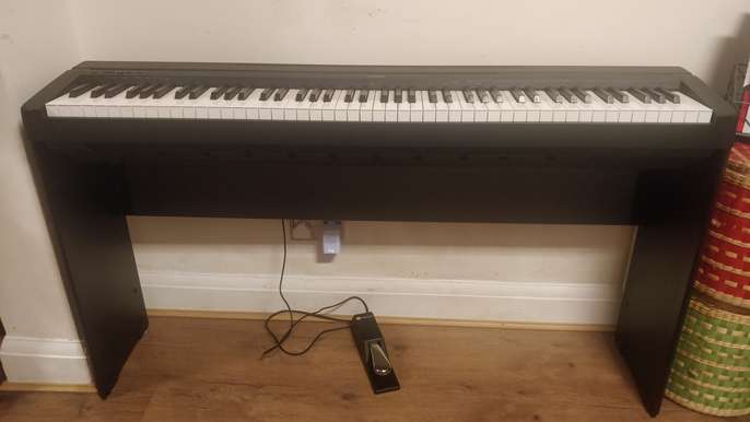 A well looked after portable piano. Well served my son doing his 5-8 grades. Just bought a newer version, so need the space. The book rest is broken. It comes with the orinal wooden stand and pedal, which we bought extra.