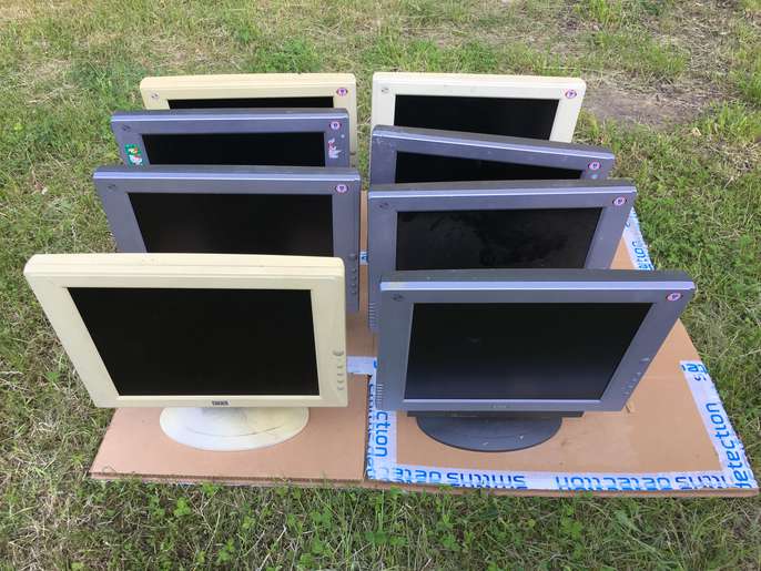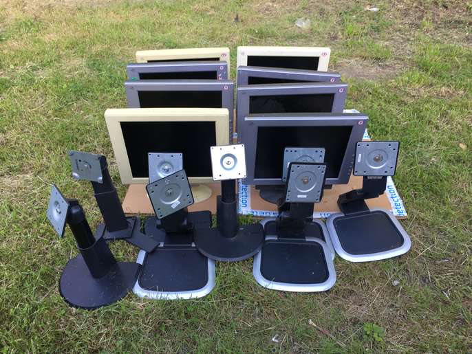 There are eight CTX screen with spare stands. size is 14 inch , i am not sure about working condition. power cables are missing. The Location is Hayes, Hillingdon UB4