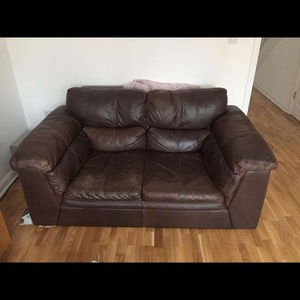 2 and 3 seater brown leather sofa. You can either one or both. For collection in person only. It really is incredibly comfortable and cozy. Same family since New. 2 seater is Approx 170cm long, 100cm wide/deep and 90cm tall (to top of back cushion). 3 seater is approx 210cm long. Heavy and sturdy with small feet to keep it slightly off the floor. Must collect- we can help you load it, but you will need someone to help you unload as it’s heavy.