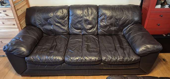 Free 2 and 3-seater leather sofas. Dark brown/chocolate colour. Good condition - no scratches or punctures. Smoke and pet free house. 3-seater (approx 2.12m) 2-seater (approx 1.54m) I believe they are DFS (can't remember). Need them gone by Sunday 11 Jan. Collection only from GWP - will likely require 2 people as they are heavy.