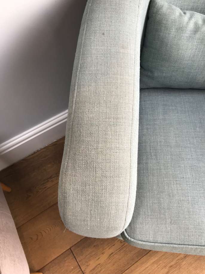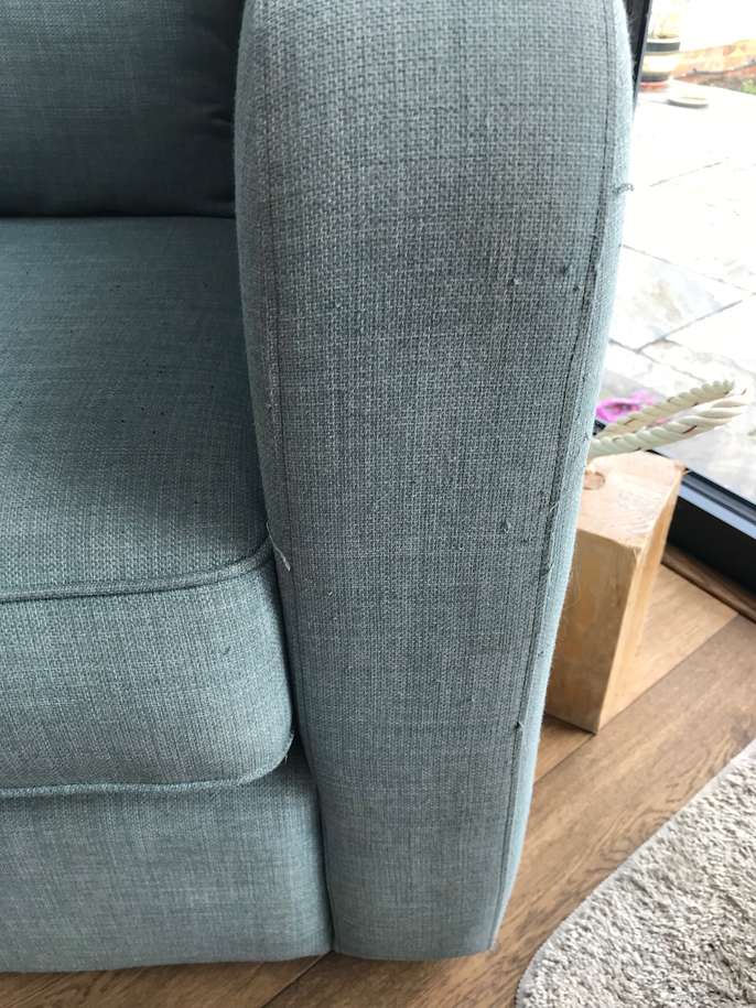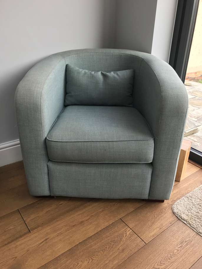 2 used DFS arm chairs. Some fading / pulled threads but chairs and cushions in good condition so could just use a clean or re-covering. From smoke and pet free home. Collection only