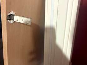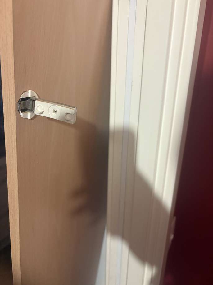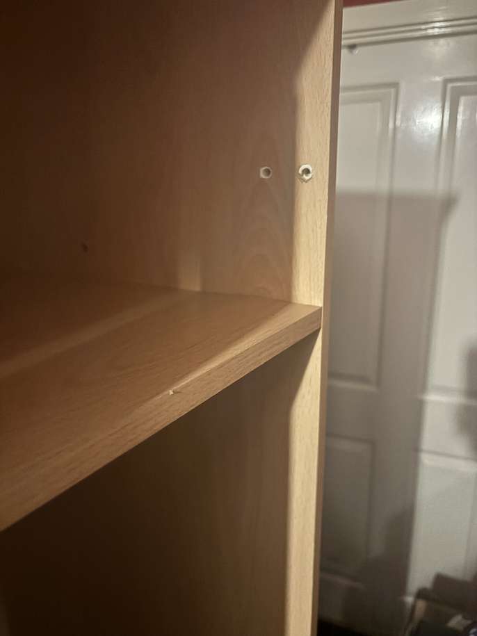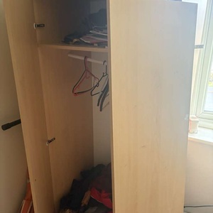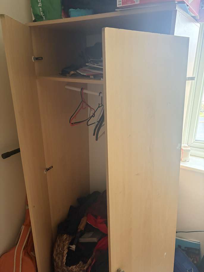 Tall 2 door wardrobe with a right door that came off its hinges, but in good condition otherwise.