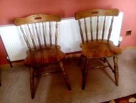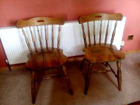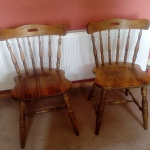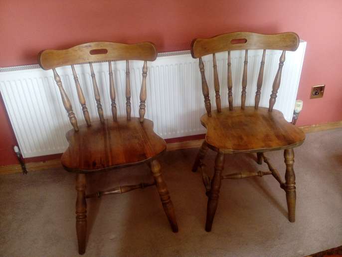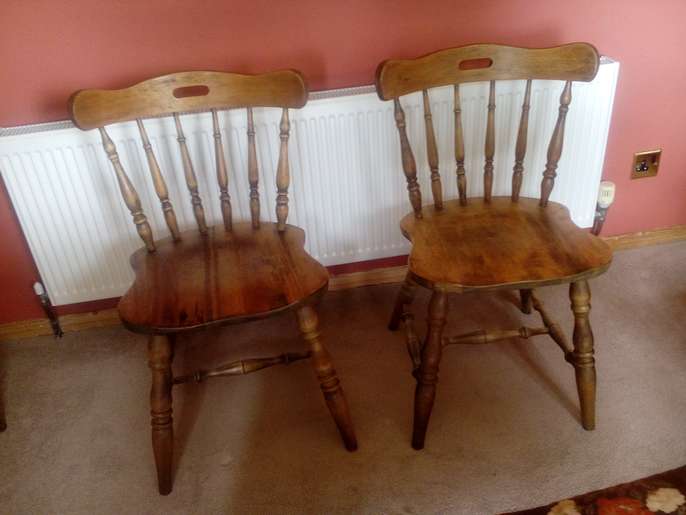 Two dining chairs in reasonable condition - they need a little glue applying to the legs. I believe they are oak.