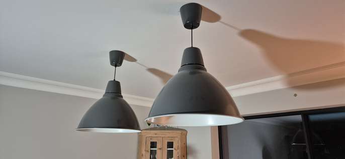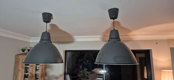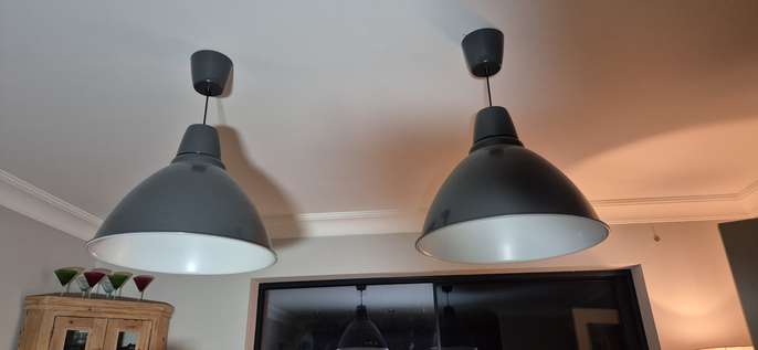2 large pendant lights. 500mm diameter. E27 bulbs, not included. Painted metal. Modern design, from IKEA.