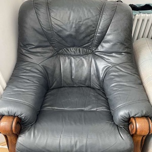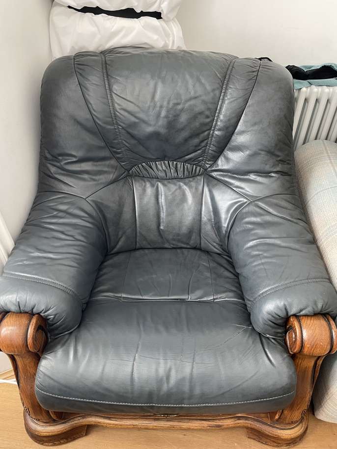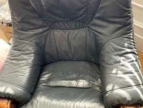 Two leather chairs dark green. The upper part can be separated from the wooden one. Collection only