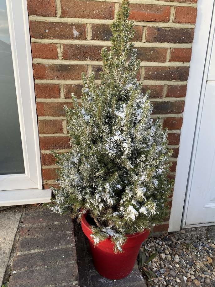 2 real fir trees were purchased from Costco for Christmas but now not needed. Were purchased sprayed with fake snow which is now starting to come off. Would be a shame to throw them.Collect either evenings or weekends.