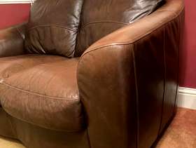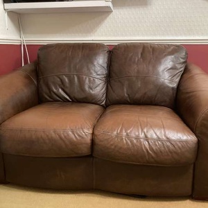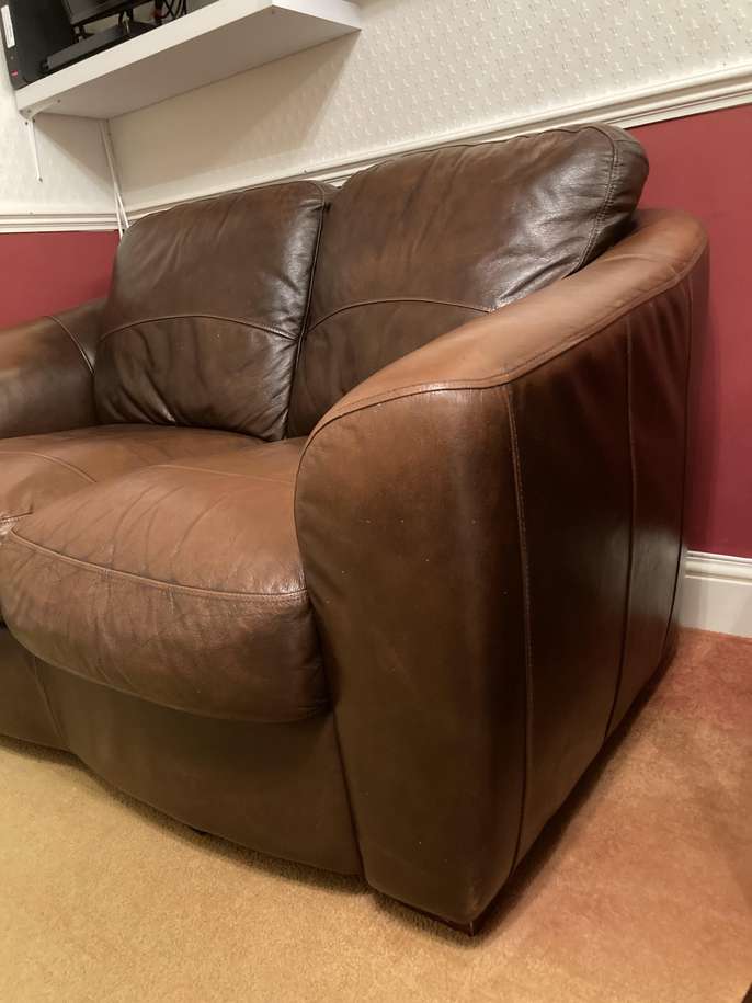 This lovely leather 2 seater sofa purchased from Harveys, is looking for a new home as we don't have space for it. It is well used from a smoke and pet free home. In good used condition. Collection only from Wheathampstead. 150cm wide x 85cm height x 95cm depth. It will require two strong people to lift it. We are unable to donate to Emmaus as I unwittingly removed the fire safety label. Please mail me if you are interested. No time wasters please.