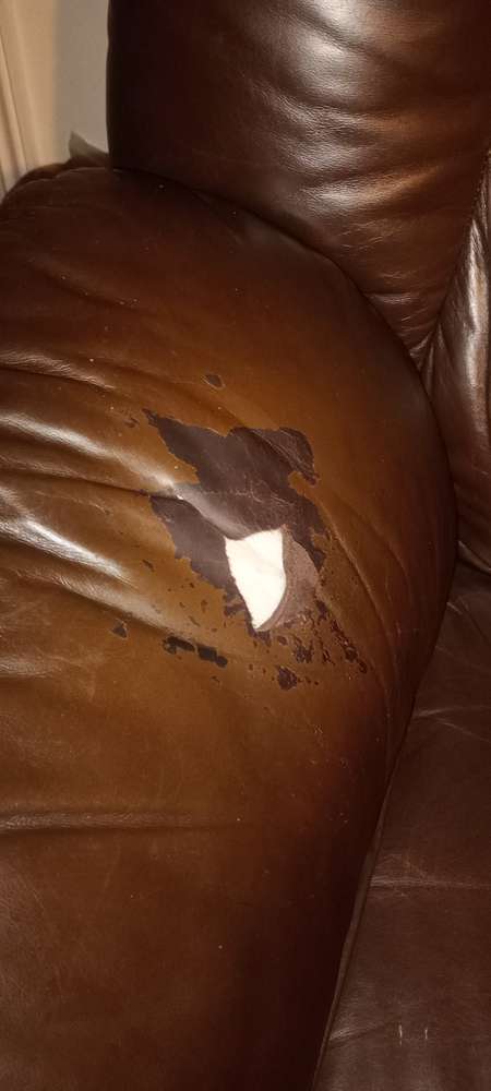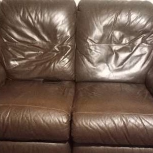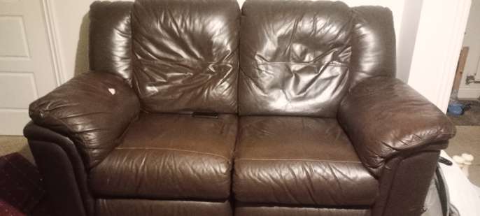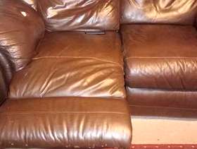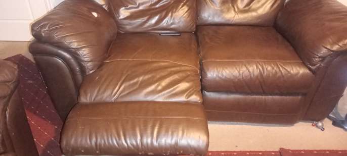 Reclines and legs lift up. in good condition but slight rip on one arm but can get a patch if needed