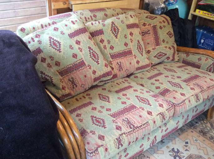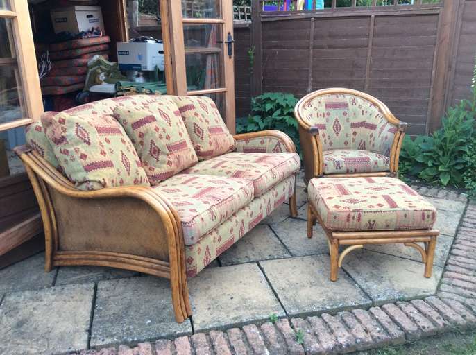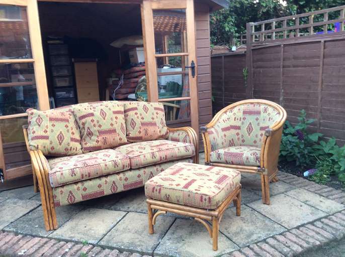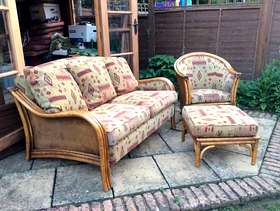 Angraves, 2 Seater settee with matching tub chair and foot stool. Very good condition
