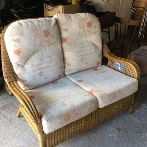 Two seater wicker sofa. Slight Damage to one side but can be covered with cushion.