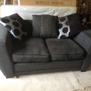 2 seater sofa. cloth, black. matching cushions. good condition. collection only. size 69 x 39 x 29